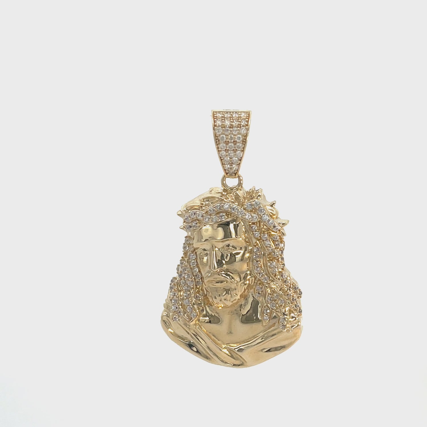 New 14K CZ Jesus Pendant Made of Real 14K Yellow Gold, 100% Guaranteed gold. Buy with Confident from H.J™️