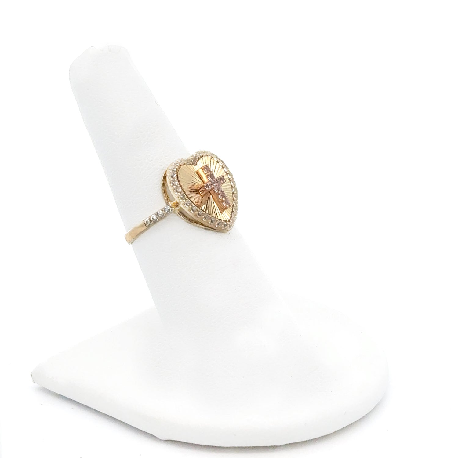 New 14K CZ Women’s Heart & Cross Ring Made of Real 14K Yellow Gold, 100% Guaranteed Gold. Buy with Confidence from H.J™️