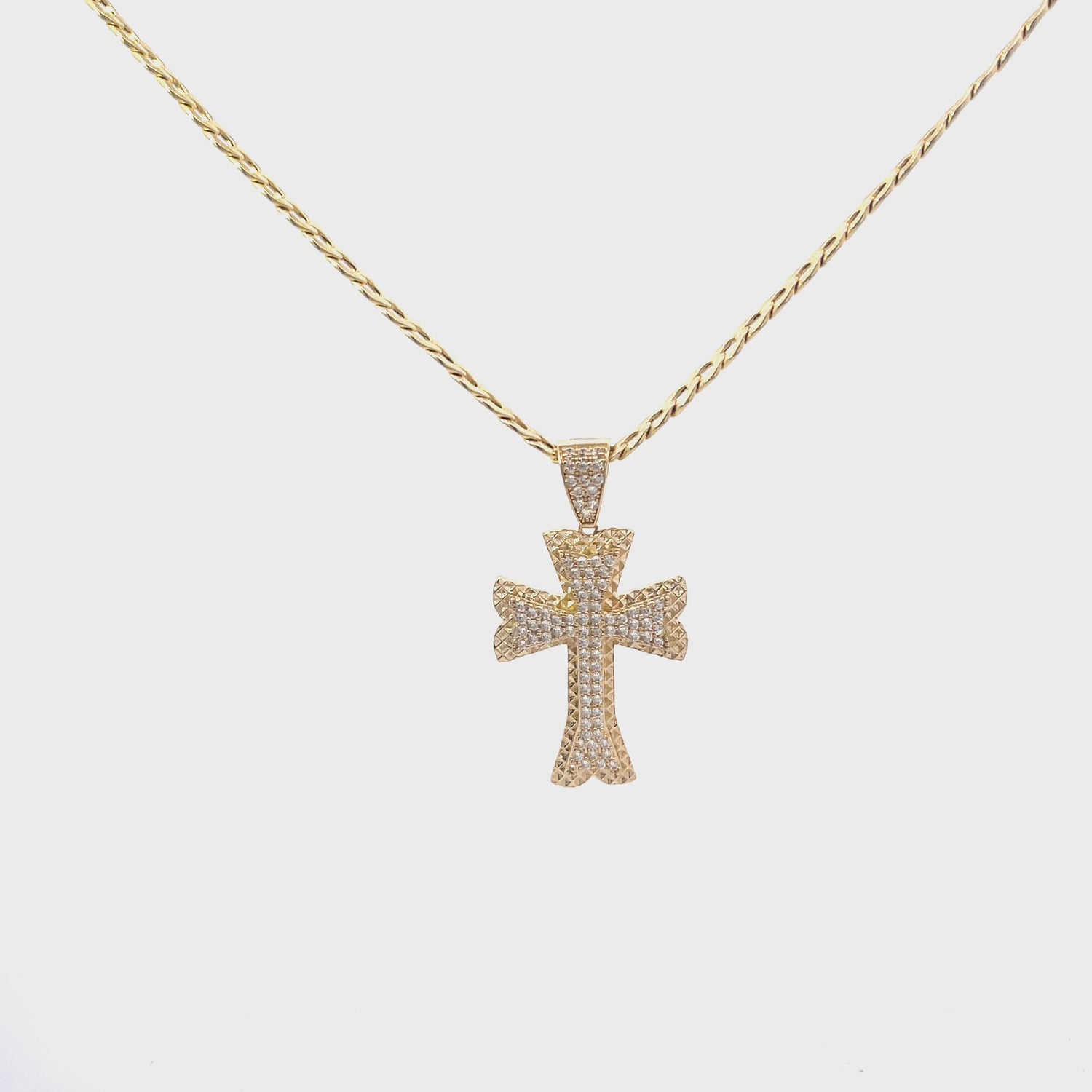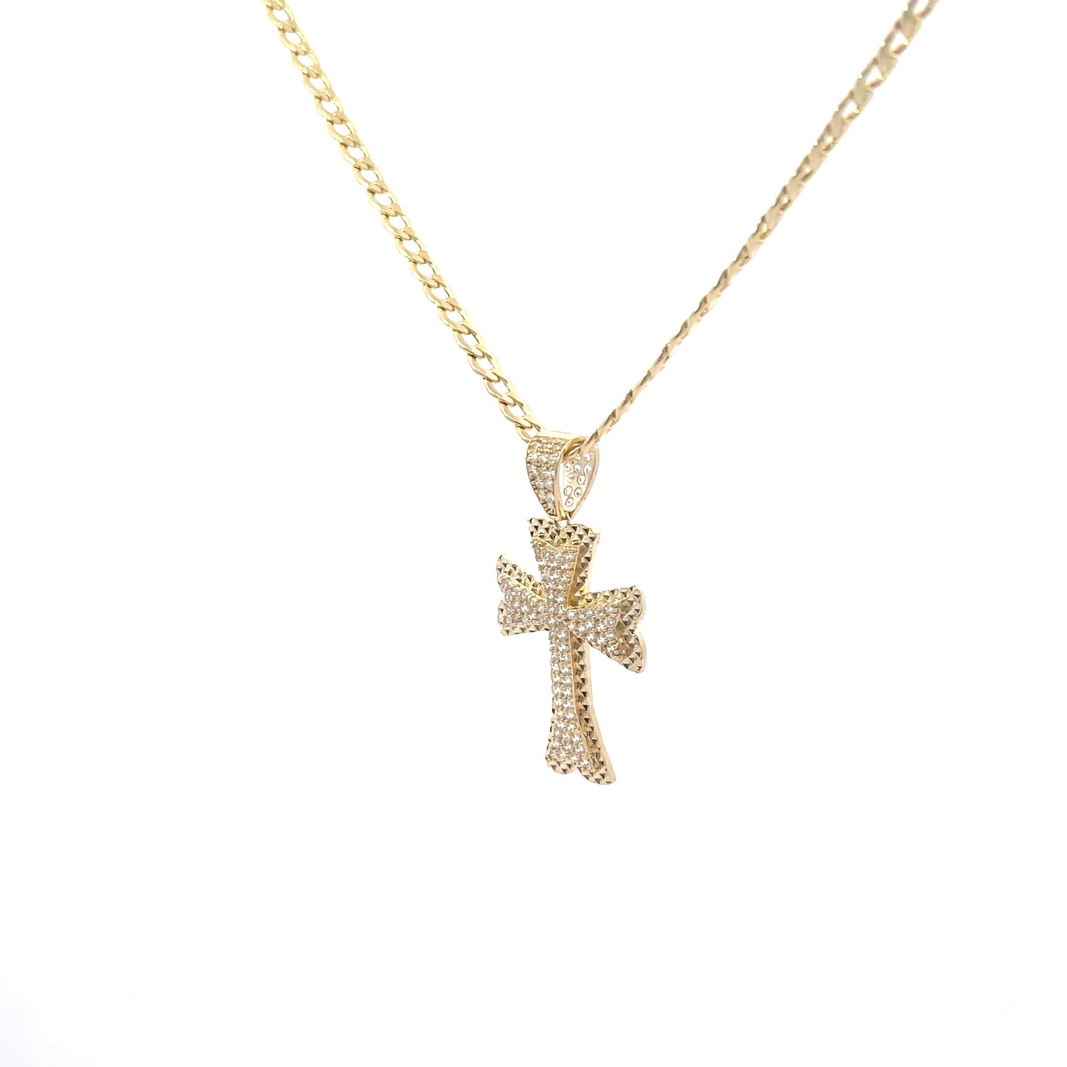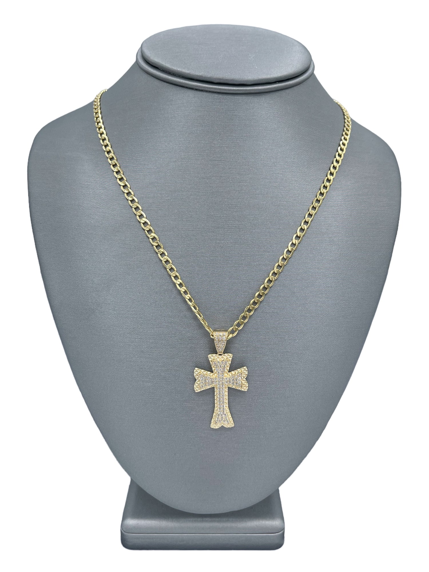 New 14K CZ Cross Pendant & Semi Solid Cuban Chain Made of Real 14K Yellow Gold, 100% Guaranteed Gold. Buy with Confidence from H.J™️