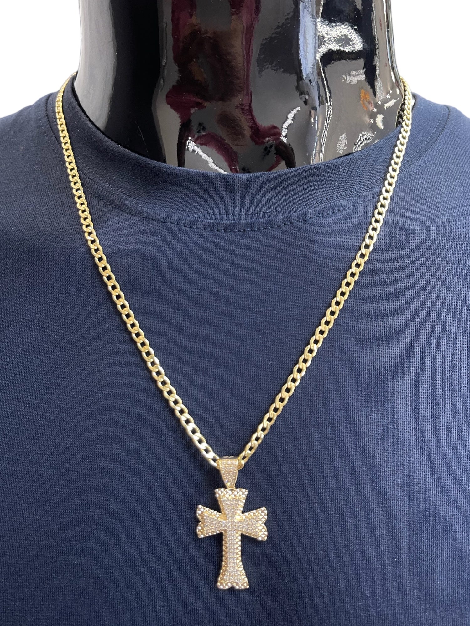 New 14K CZ Cross Pendant & Cuban Chain (4.0MM). H.J™️