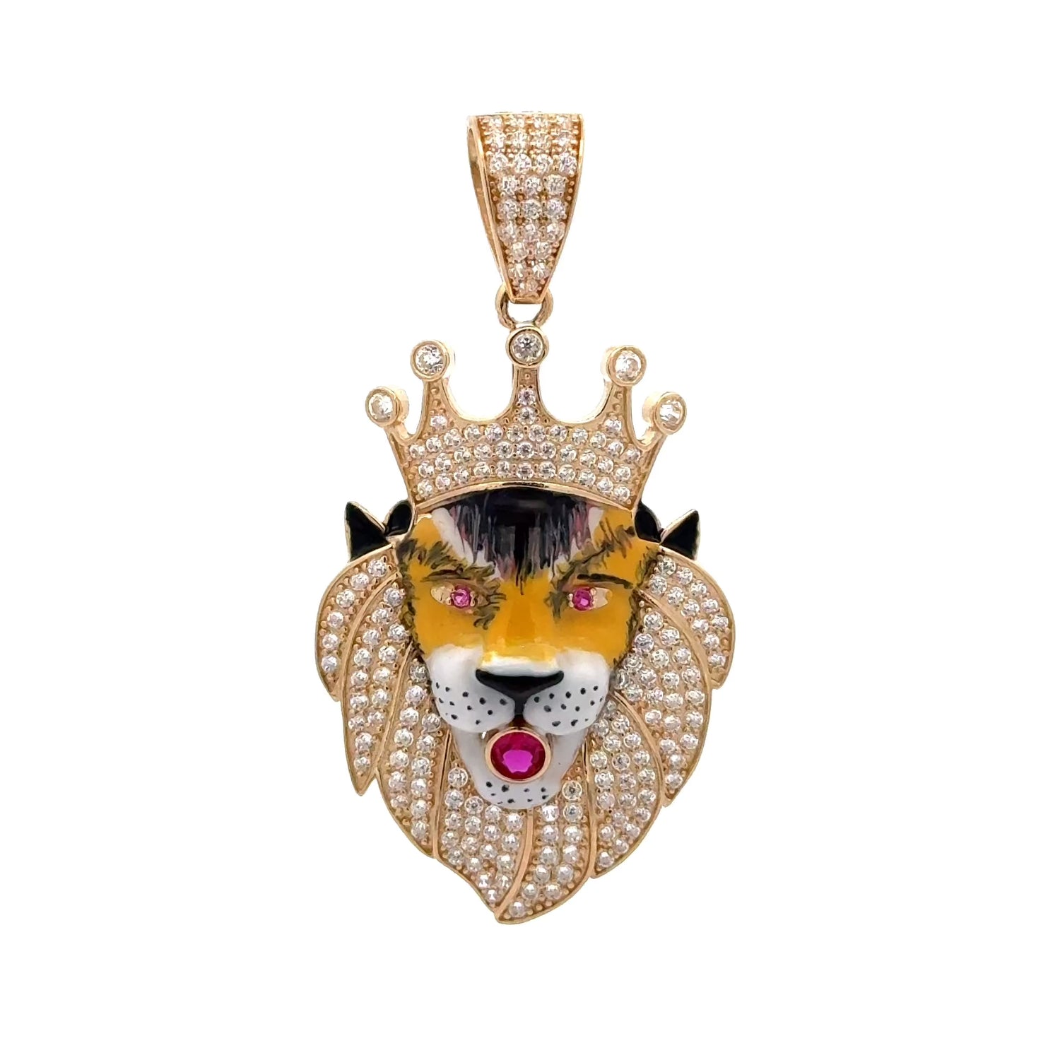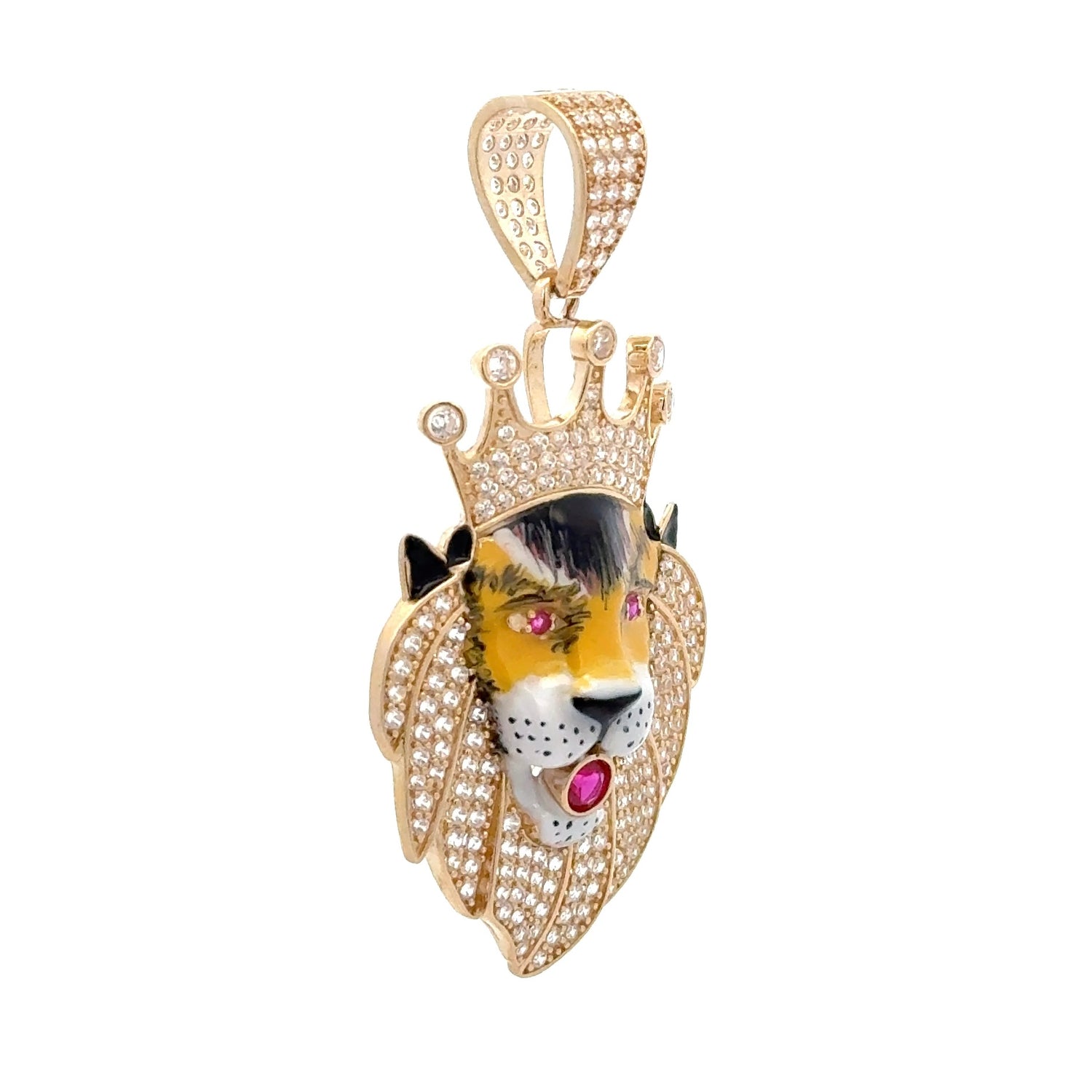 New 14K CZ Lion With Crown Pendant (29.3MM). H.J™️