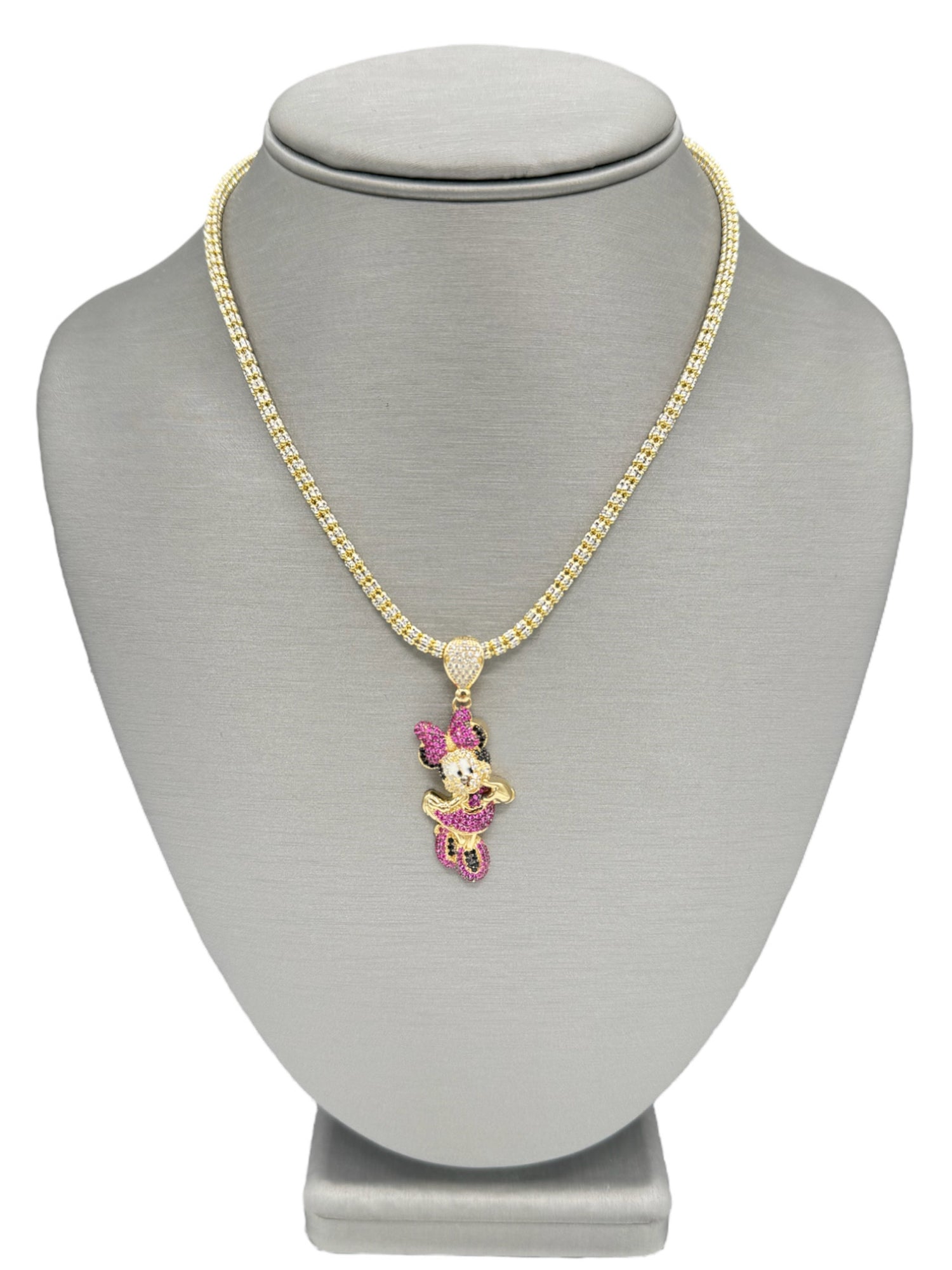 New 14K CZ Minnie Pendant & Ice Chain Made of Real 14K Yellow Gold, 100% Guaranteed gold. Buy with confidence from H.J™️