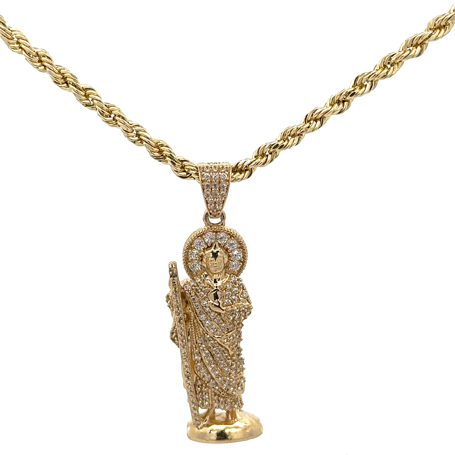 New 14K CZ Saint Judas Pendant & Rope Chain. H.J™️