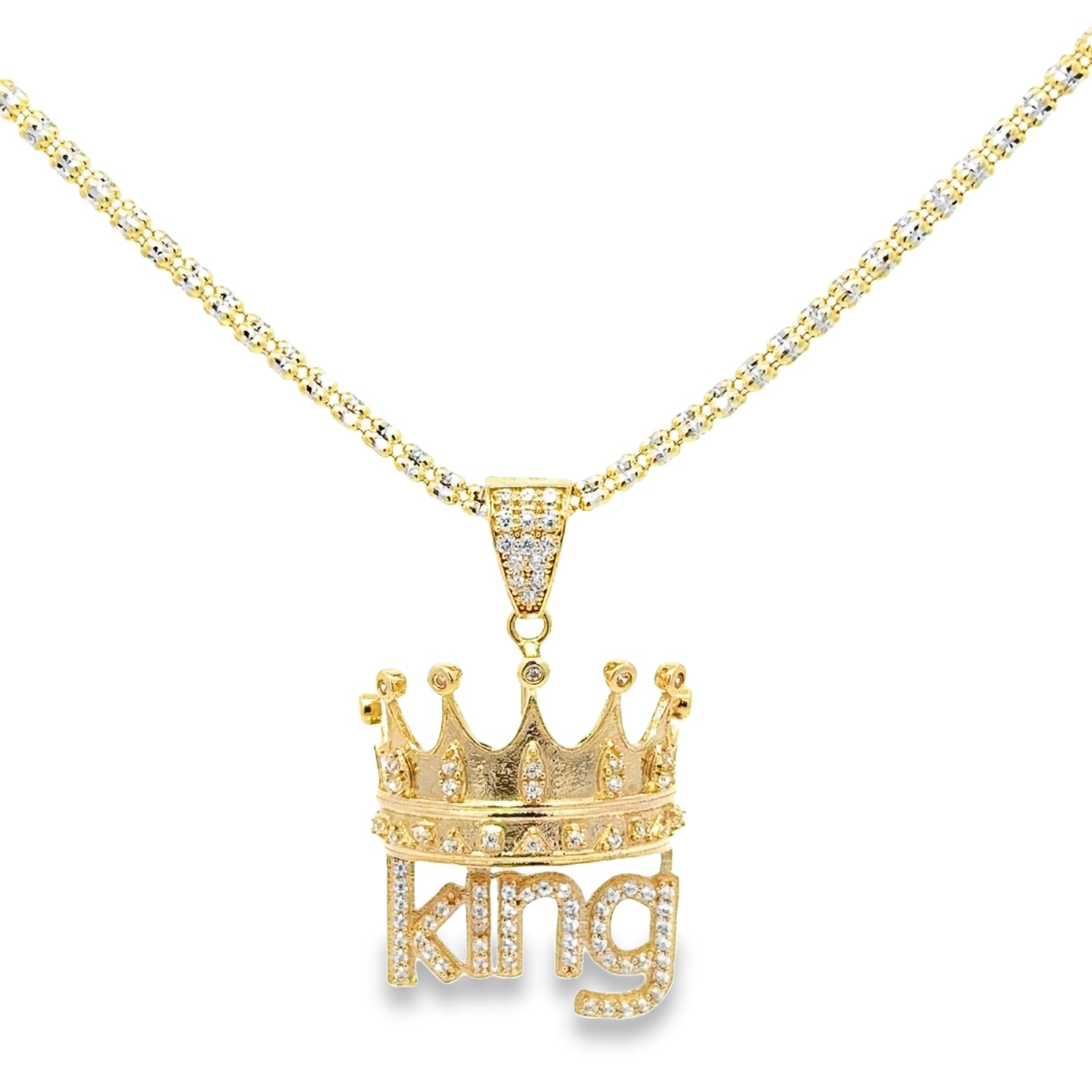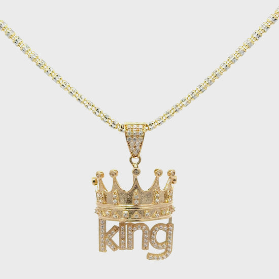 New 14K CZ King Pendant & Ice Chain Made of Real 14K Yellow Gold, 100% Guaranteed Gold. Buy with Confidence from H.J™️
