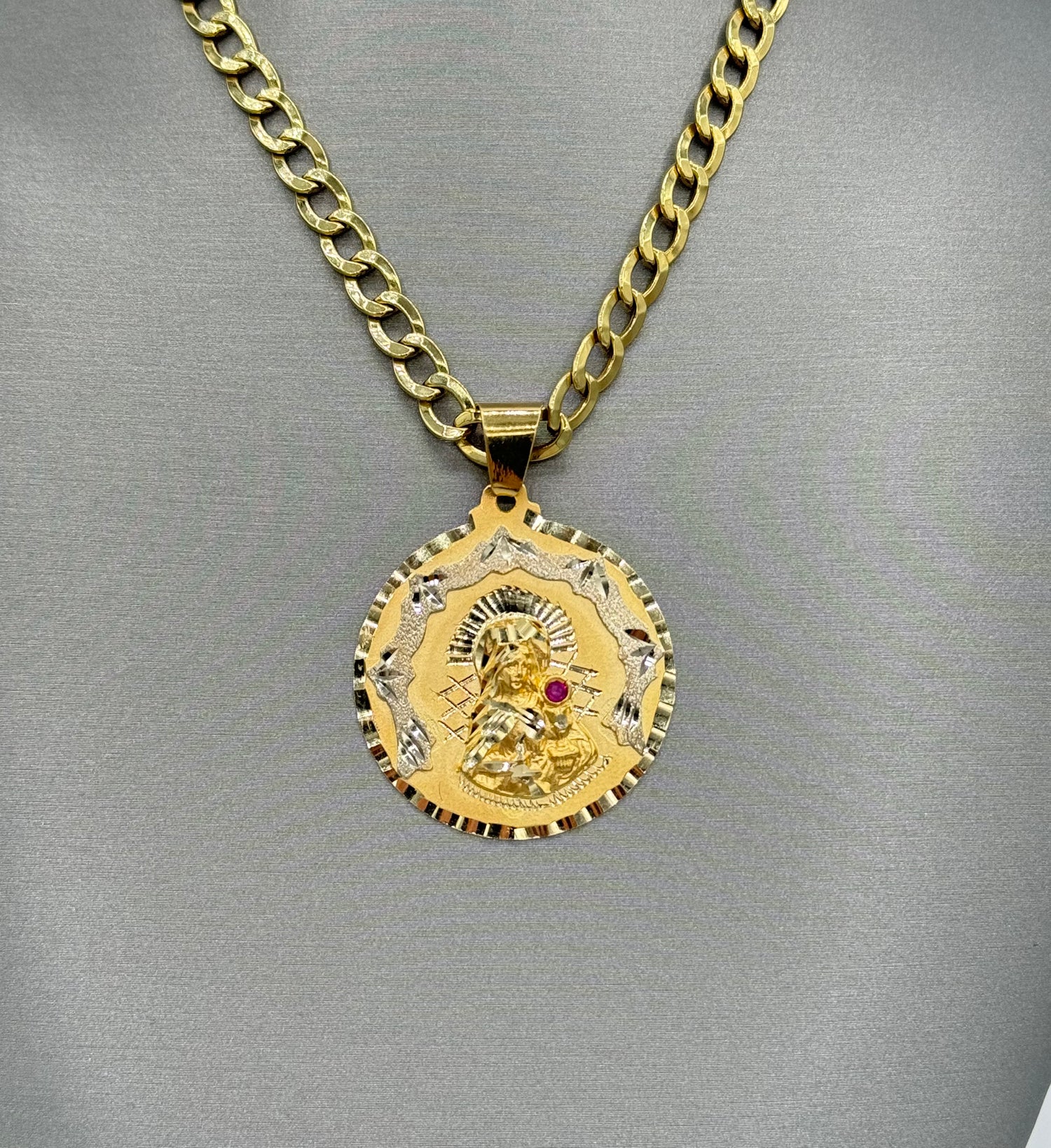 New 14k Virgin Pendant & Semi Solid Cuban Chain Made of Real 14K Yellow Gold, 100% Guaranteed Gold. Buy with Confidence from H.J™️
