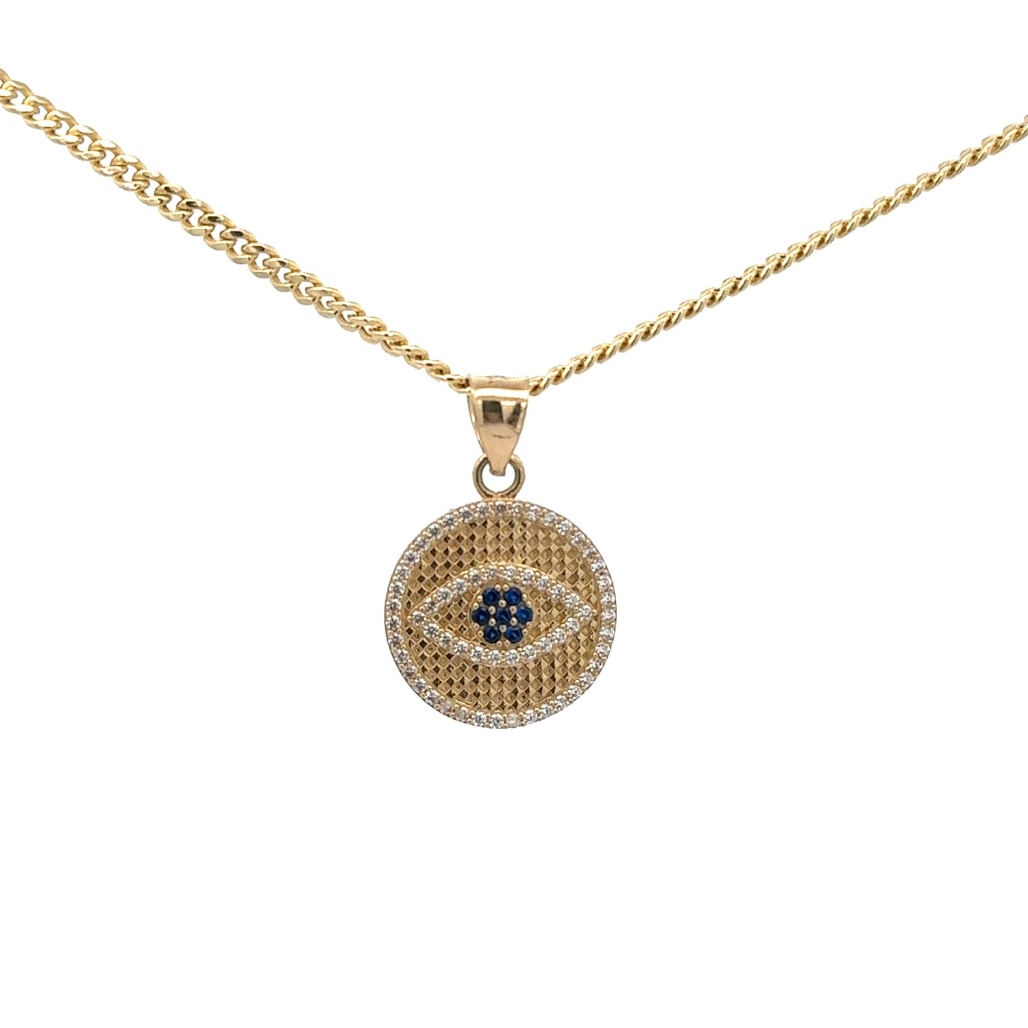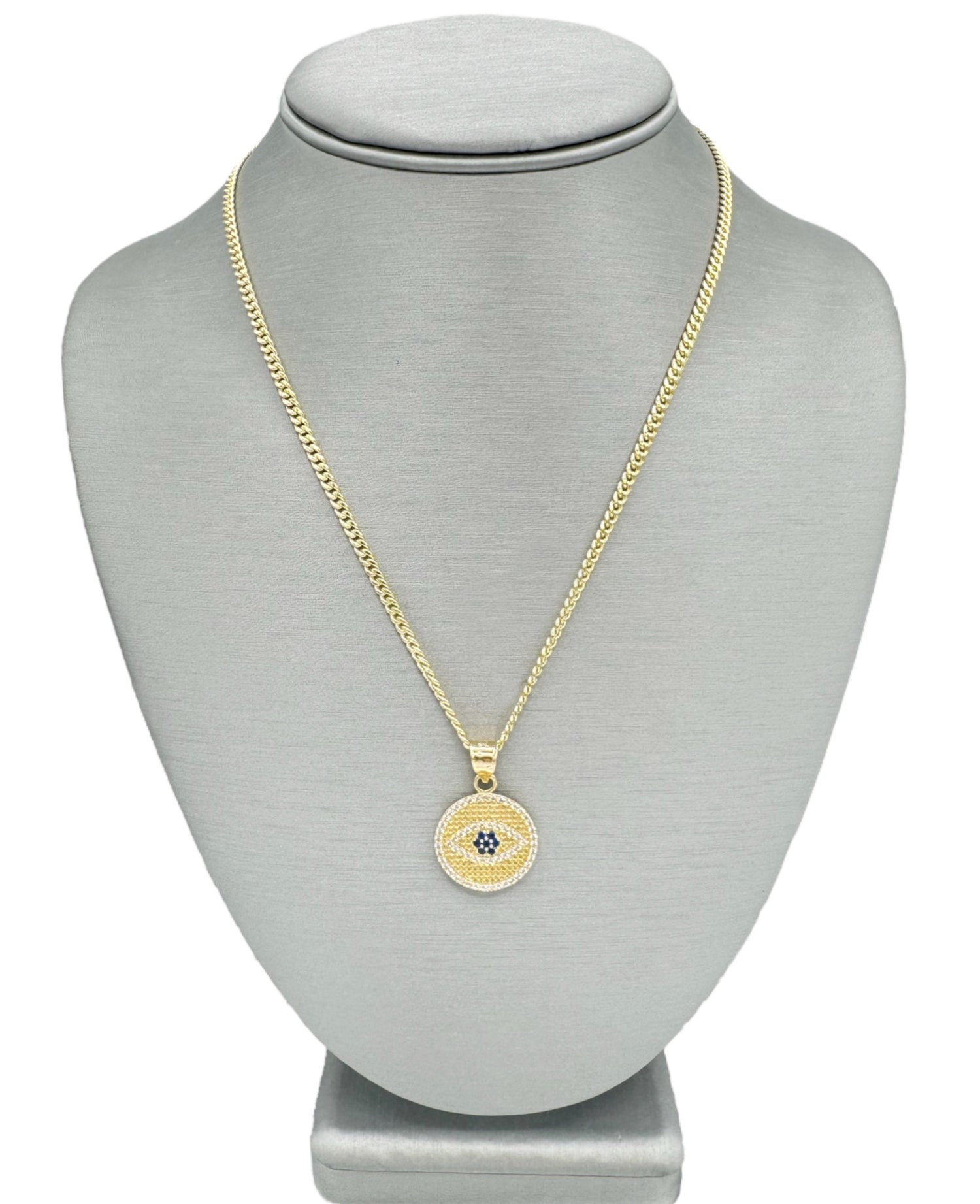 New 14K CZ Round Evil Eye Pendant & Semi Solid Miami Cuban Chain Made of Real 14K Yellow Gold, 100% Guaranteed gold. Buy with confidence from H.J™️