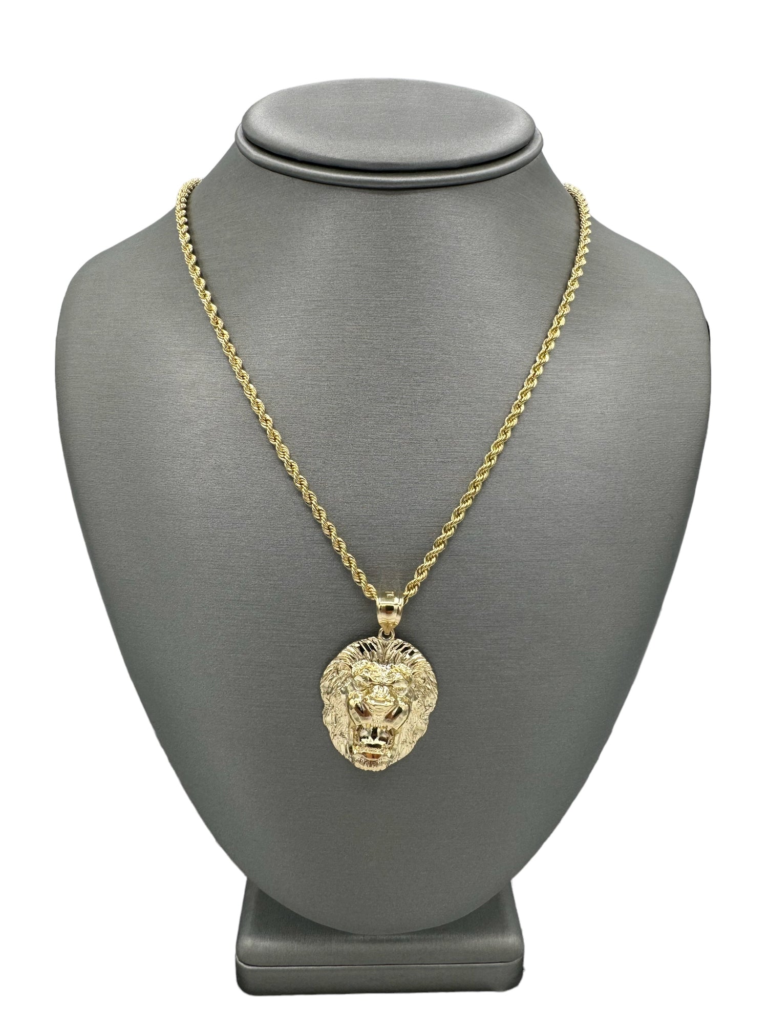 New 14K Lion Face Pendant & Semi Solid Rope Chain Made of Real 14K Yellow Gold, 100% Guaranteed Gold. Buy with Confidence from H.J™️